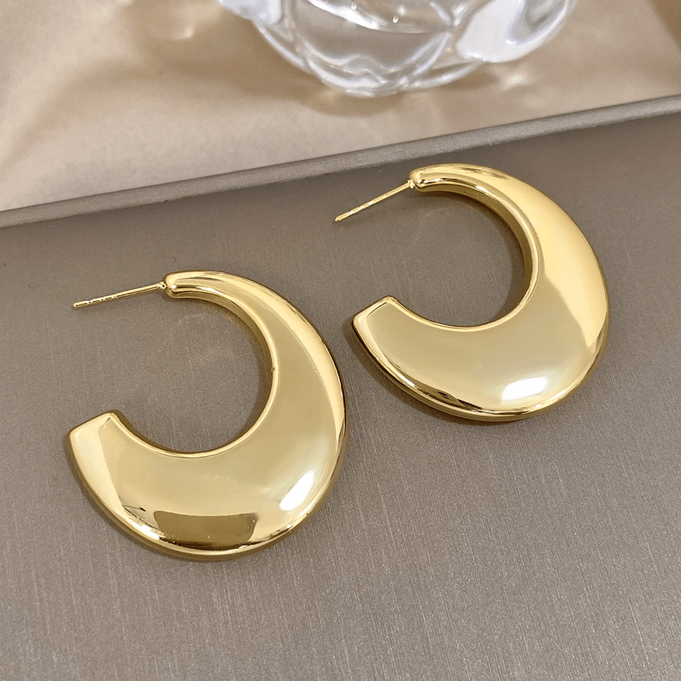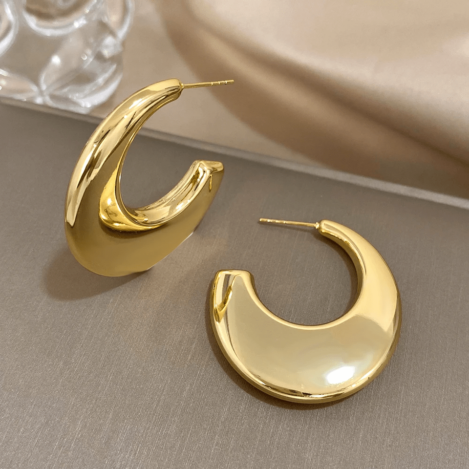 316L Stainless Steel C-shaped Hoop Earrings for Women Fashion Glossy Smooth.