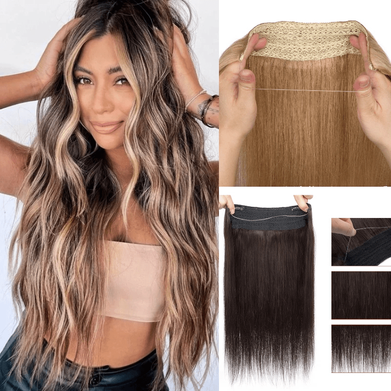 Clip Hair Extensions, Fish Line Invisible Weft Hairpiece