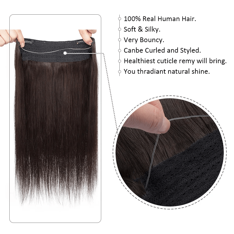 Clip in Hair Extension Real Human Hair Apply With Invisible Wire Natural Hair