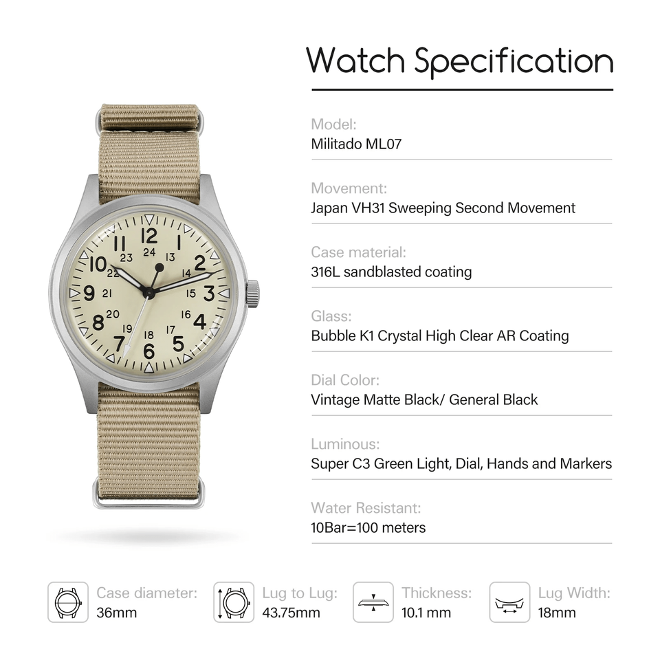 Militado ML07 Vintage Quartz Watch VH31 and 41 similar items