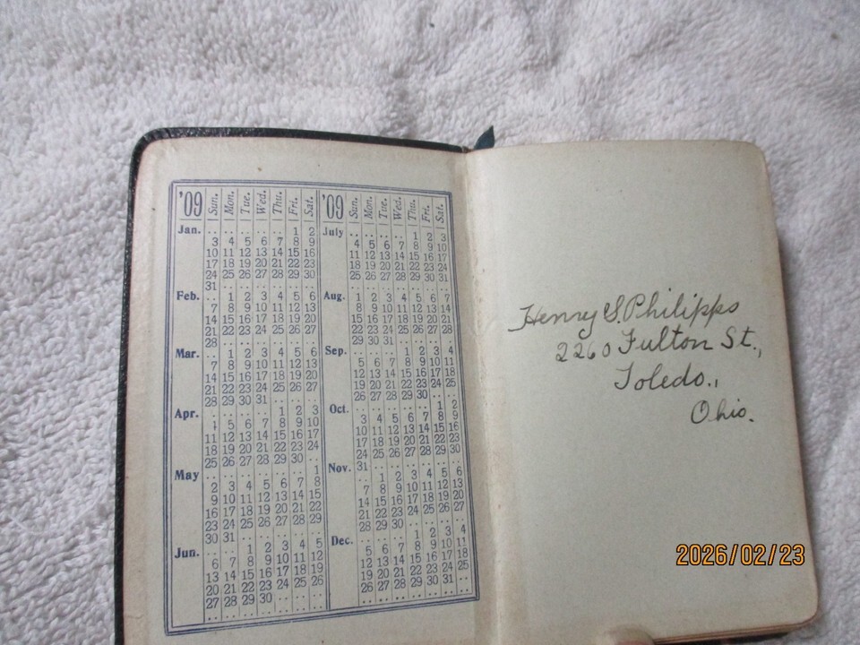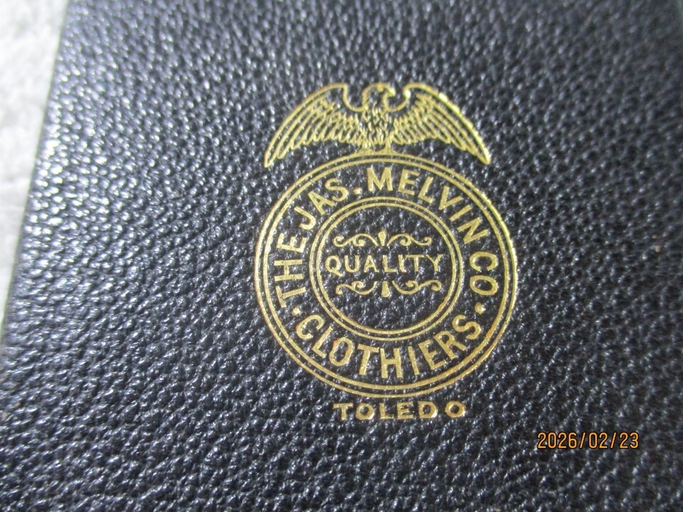 1909 Jas.Melvin clothing advertising pocket notebook calendar postage Toledo,OH