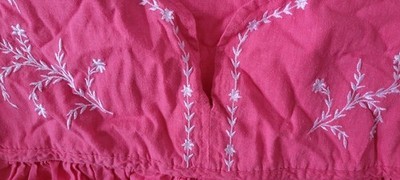 This nightgown is in good used condition. There are no holes or stains that I found. There is writing on the tag as seen in the photos. The size is 3X. Measurements are approximately: Length: 41 inches. Pit to Pit: 26 inches.