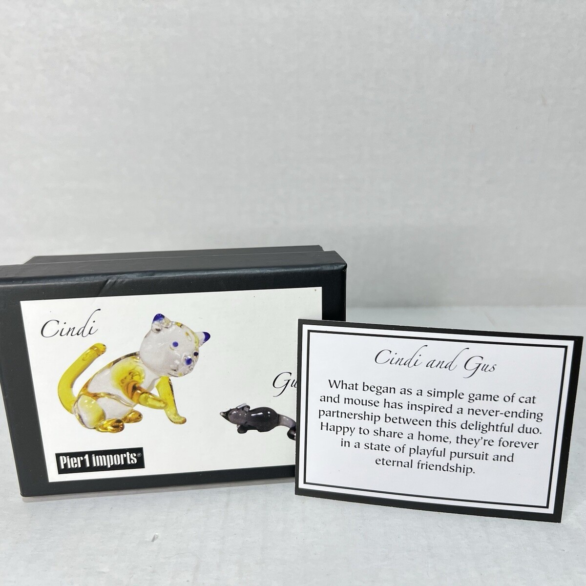 NEW Pier One Glass Cat Mouse Cindi Gus Blown Glass Miniature