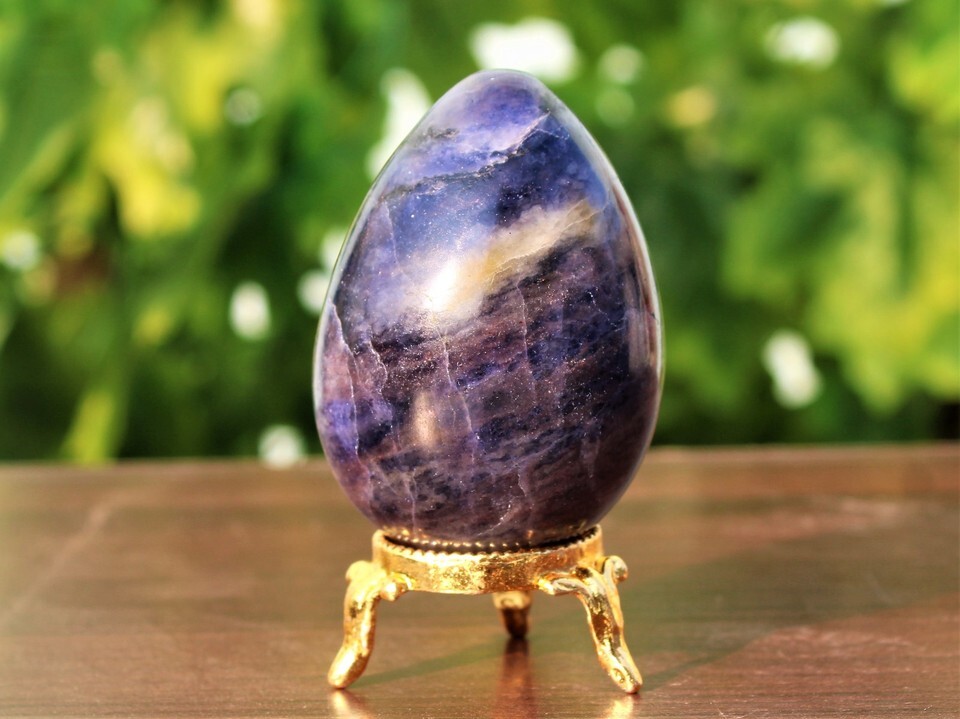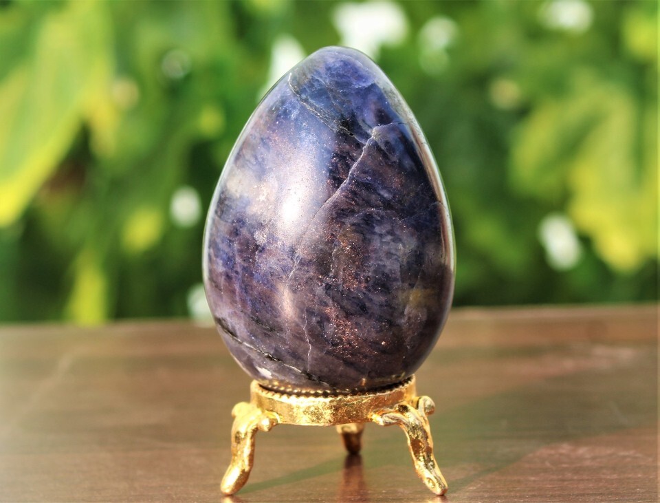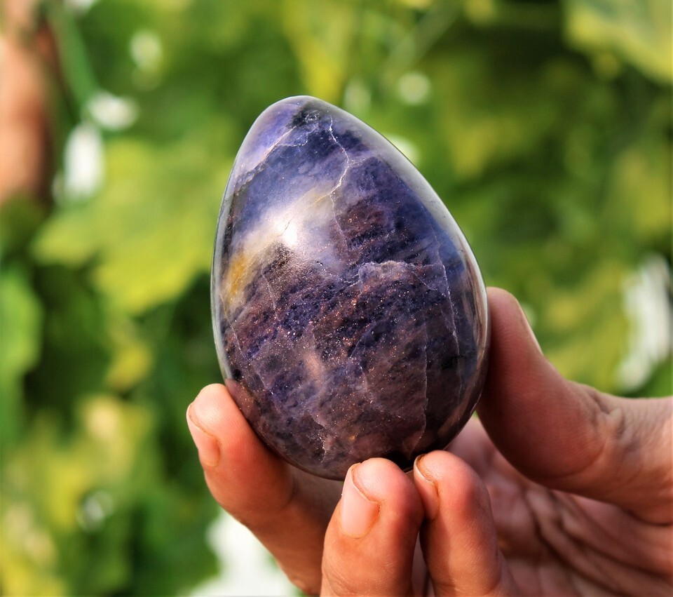 Superb 70mm Natural Blue Iolite Crystal Healing Energy Reiki Chakras Stone Egg