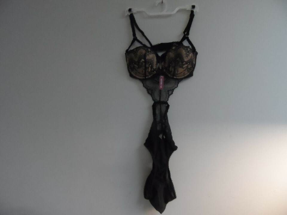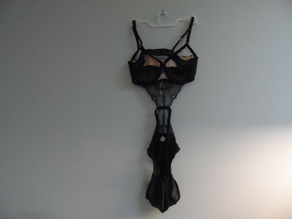 Adore Me Women's Lingerie Lace Mesh See Through Bodysuit 00113 Black Large