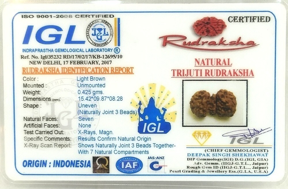 Rare Trijuti Rudraksha - Tribhagi Rudraksh - GauriPath Rudraksha - IGL Certified