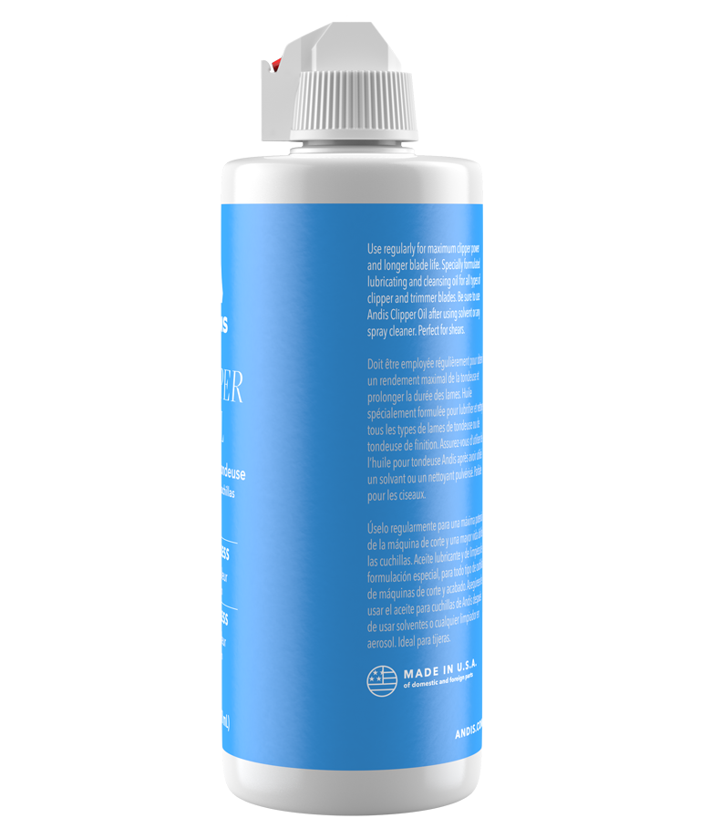 Specially formulated lubricating and cleansing oil for all types of clipper and trimmer blades.