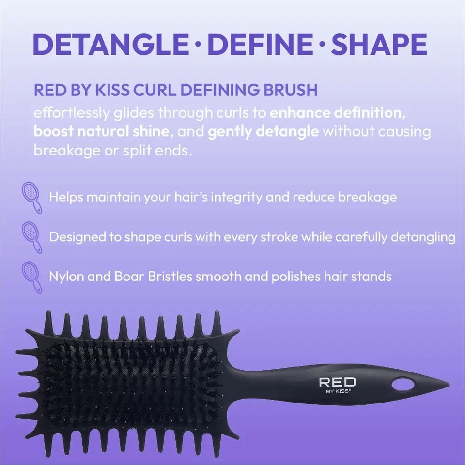 RED Curl-Art Styler ? a multi-functional detangling and curl-defining brush designed for curly, coily, and textured hair. Featuring bold chrome finishes, flexible bristles, and edge-defining side combs, this brush helps you style with precision and shine.