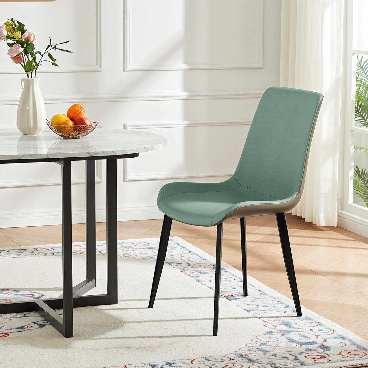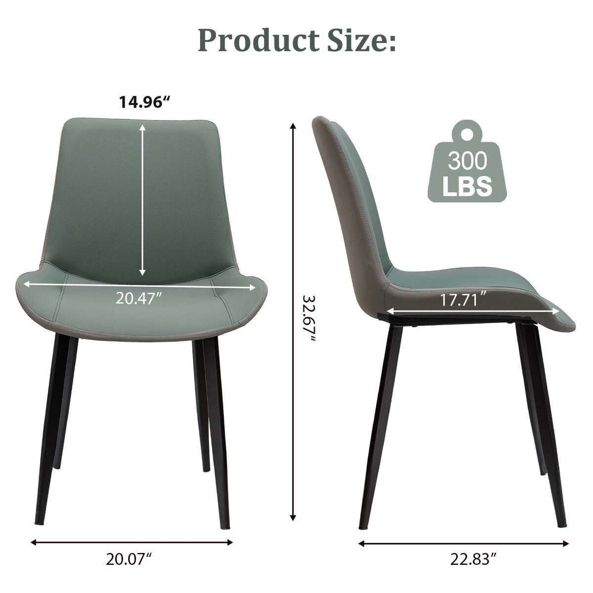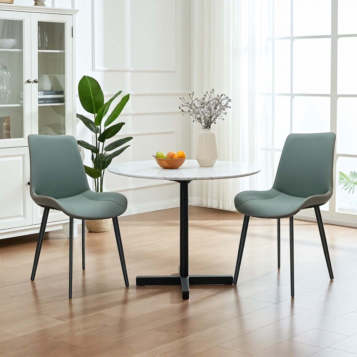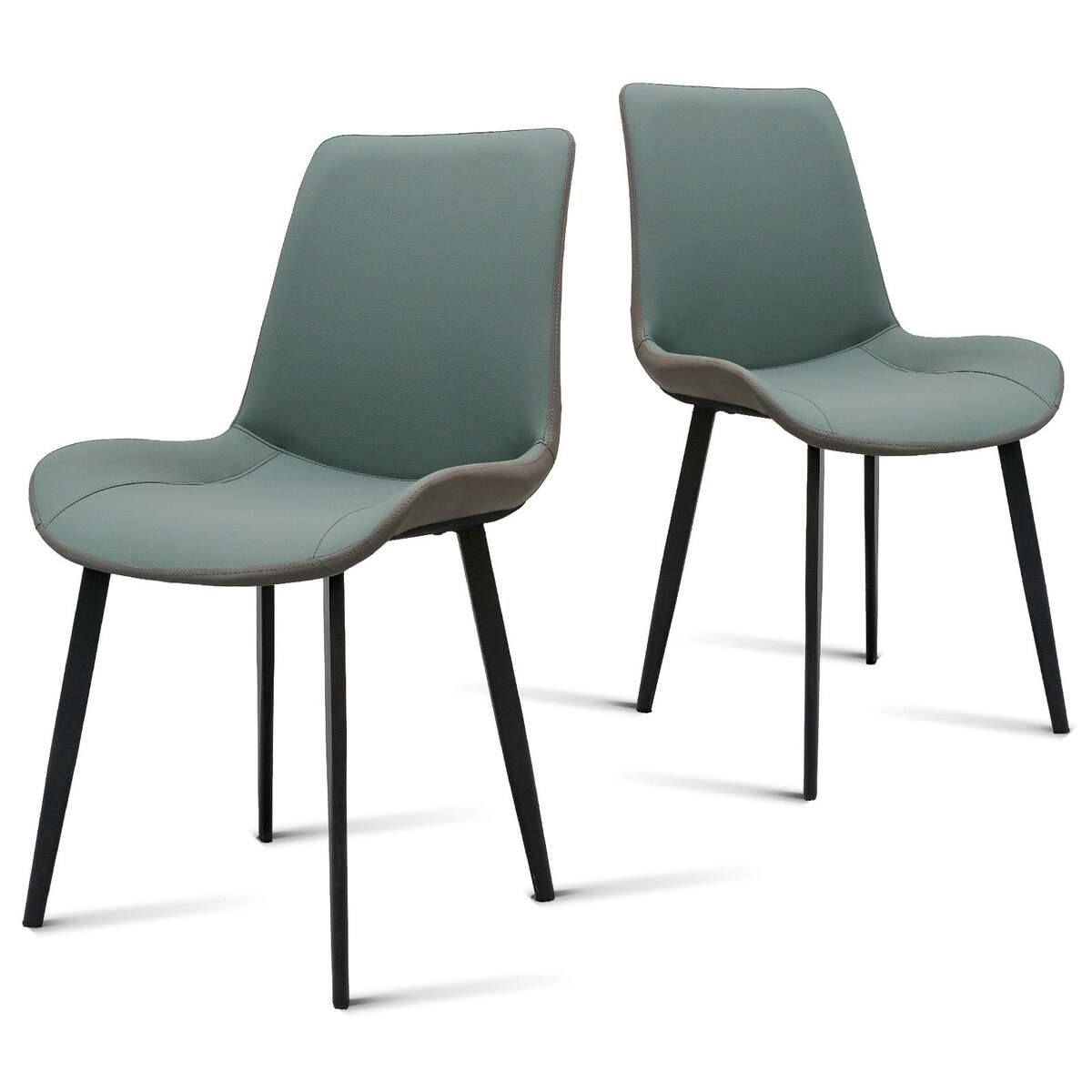 Green & Grey PU Leather Dining Chairs Set of 2: Modern Metal Leg Design