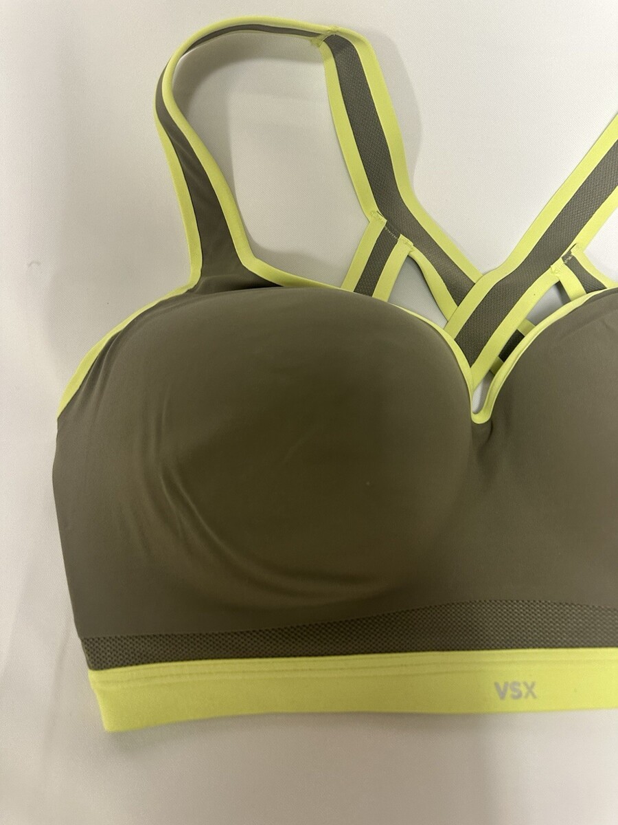 Victoria's Secret VSX Sport Bra Strappy VSX 34DDD Incredible Plunge Olive Green
