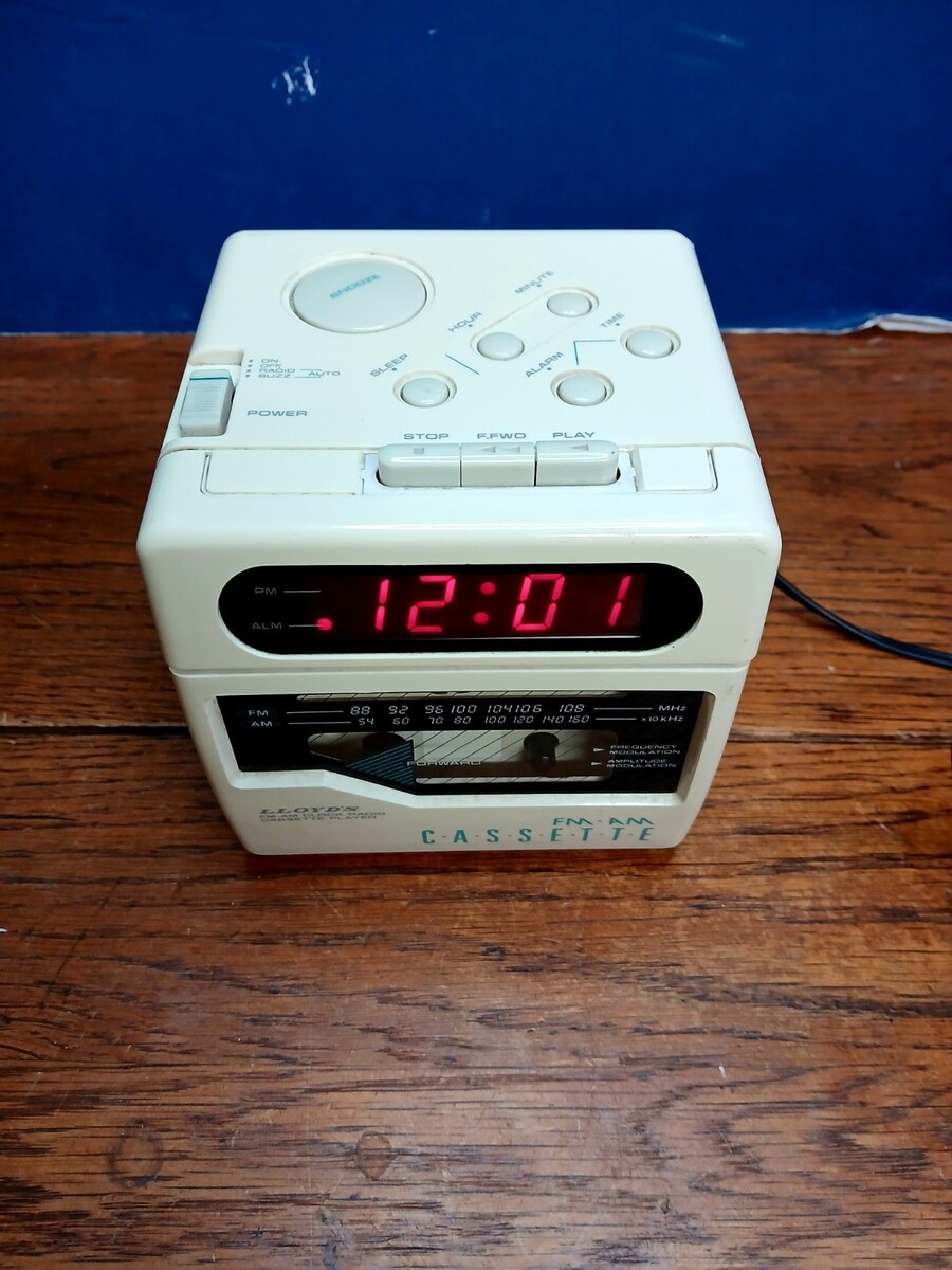 This is a Lloyds Clock Radio CR201 Vintage Cube AM/FM Cassette Player. Tested and the radio and clock work fine. The cassette doesn't play. Ships fast!