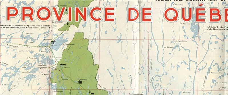 A 1962 La Province de Quebec Map in French English. In very good condition . Published by the office Provincial de Publicite, Service Du Tourisme.