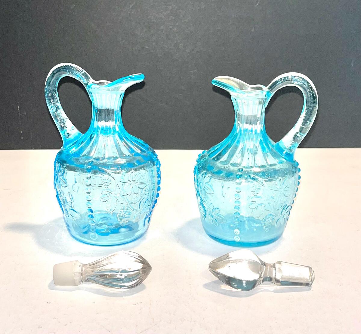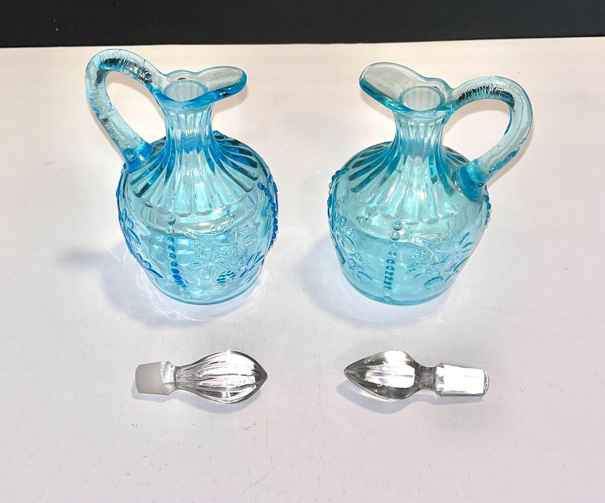 Pair of Northwood Blue Opalescent Daisy & Fern Cruets (Twin Set)