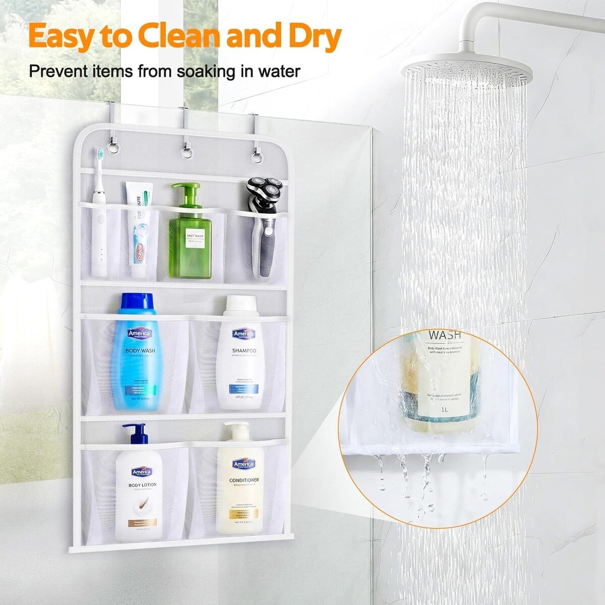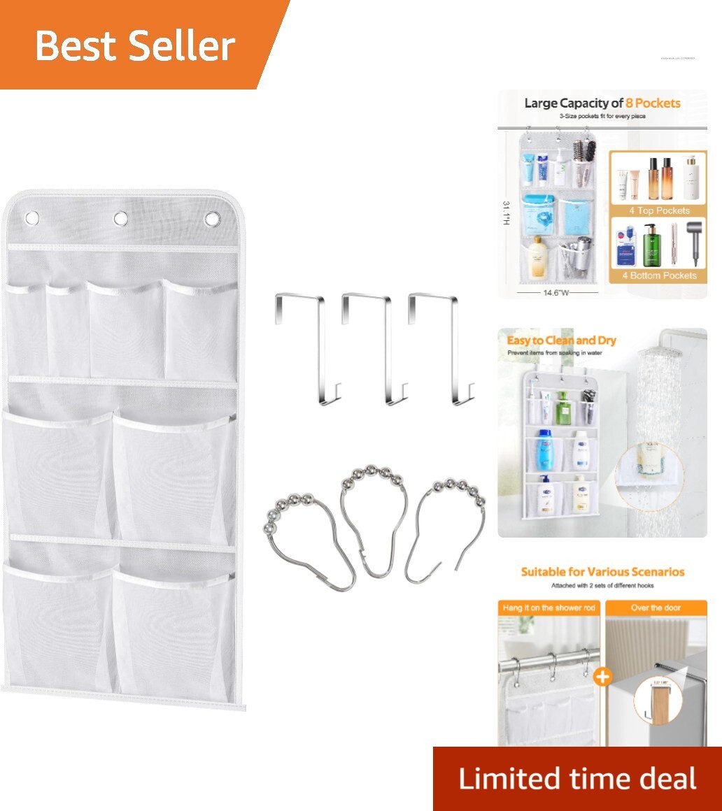 Hanging Mesh Shower Caddy with 8 Pockets - Durable Organizer for Toiletries