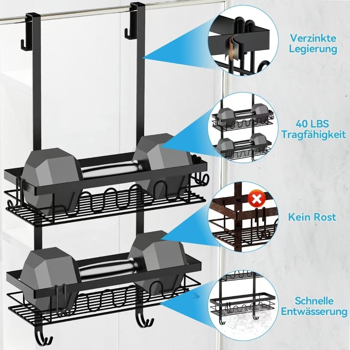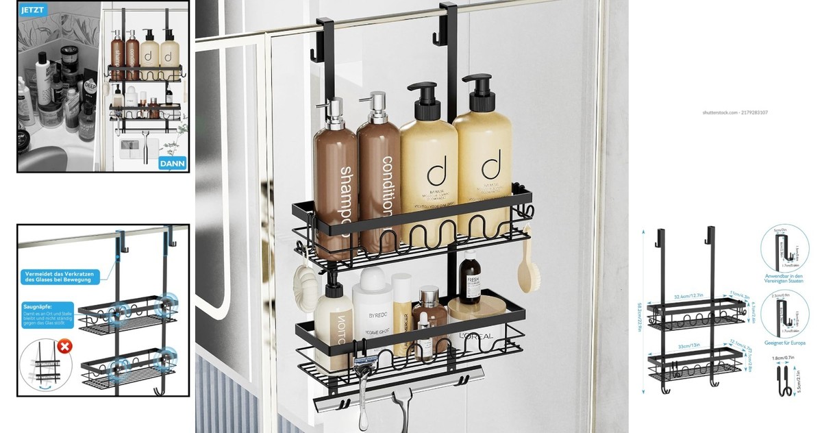 3-in-1 Shower Rack with Adjustable Baskets: Organize shower gel, shampoo, and towels effortlessly!