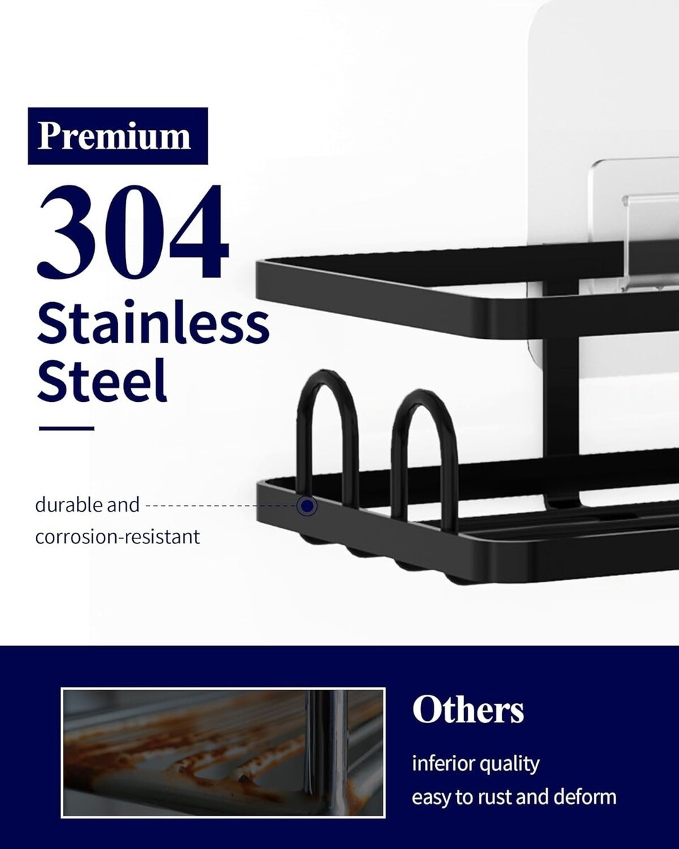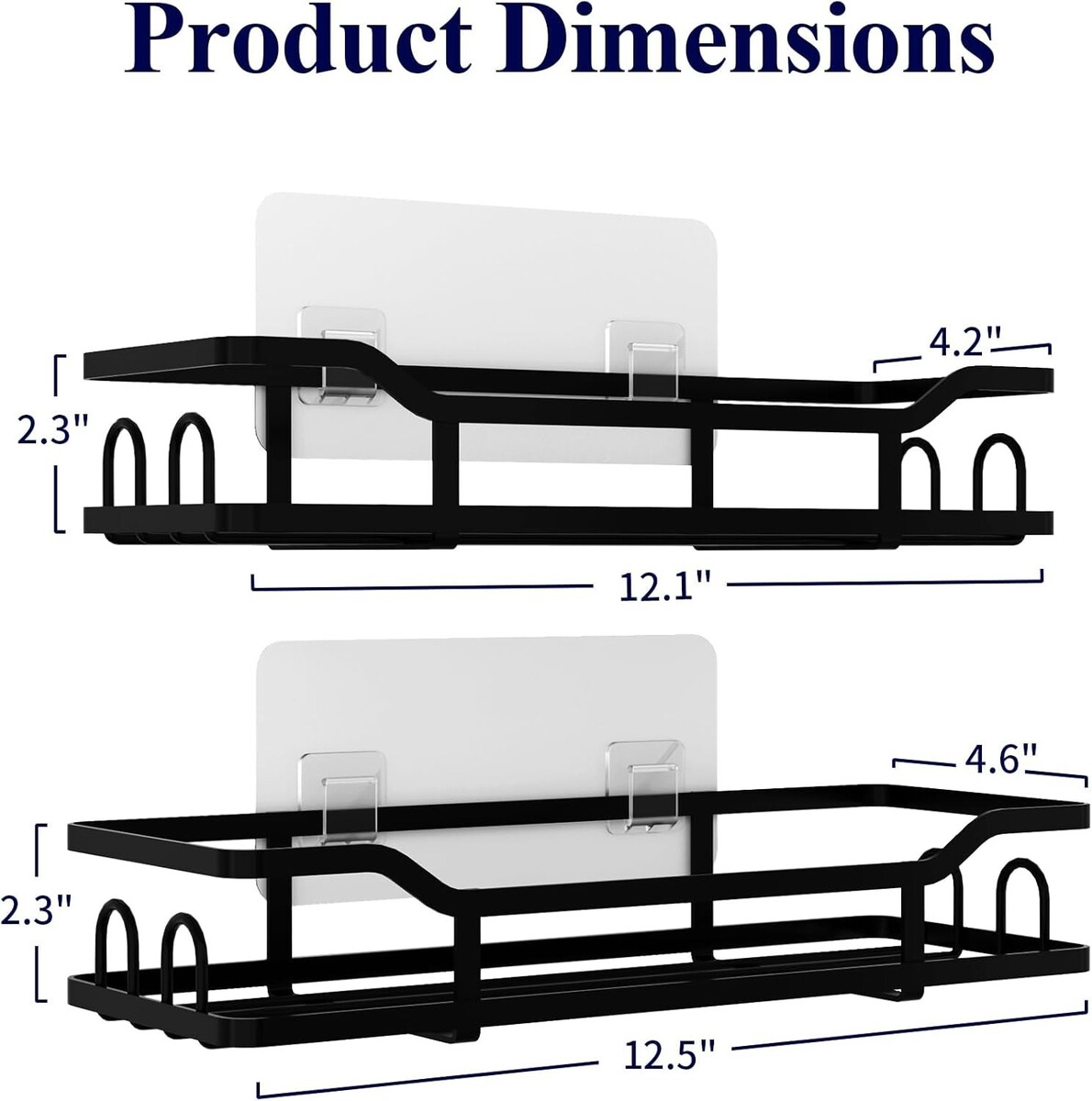 No Drill Shower Caddy Set - 2 Rustproof Stainless Steel Organizers with Hooks