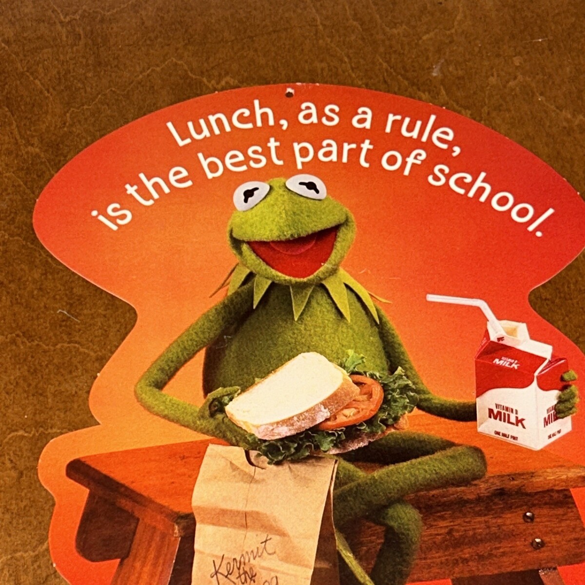 VINTAGE 1982 MUPPETS HALLMARK KERMIT THE FROG SCHOOL LUNCH WALL DECORATION. Condition is Used. Shipped with USPS Ground Advantage.