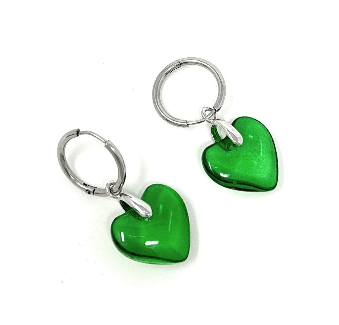 Green Glass Heart Earrings Crystal Earrings Heart Drop Earrings Valentine Gift