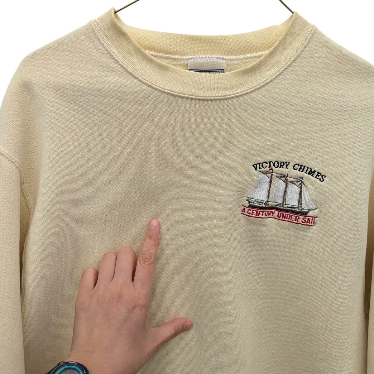 Lee Heavyweight Yellow Victory Chimes Schooner Sail Crewneck Sweatshirt Small S