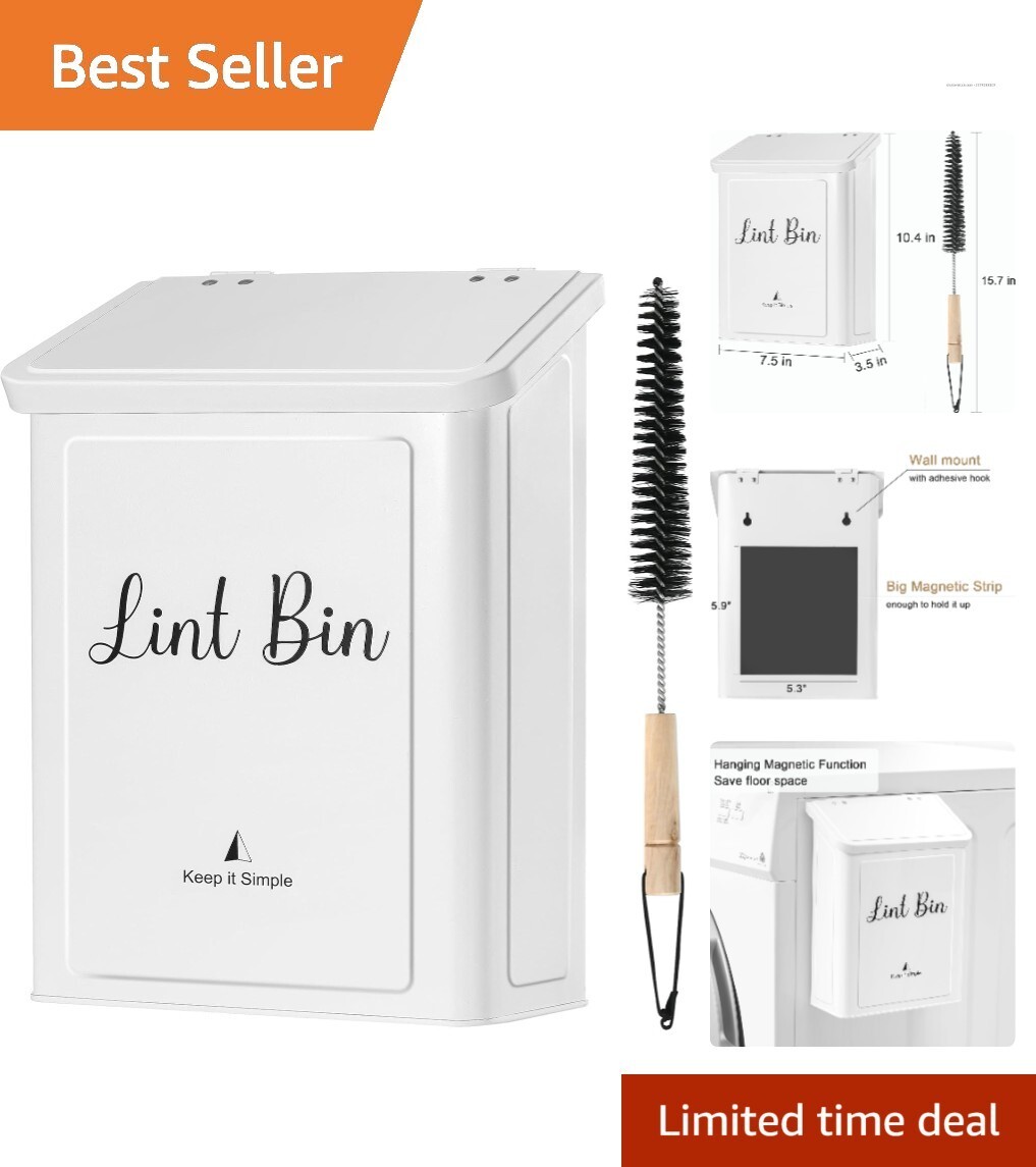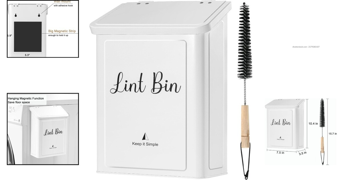 Features: With Liner,Ground-Space Saver,Strong Magnet,Durable Metal,Waterproof Coating,Wide Applications,Includes Dryer Lint Brush,Two Installation Options,Adhesive Hooks for Wall Mount,Swing-Lid Opening
