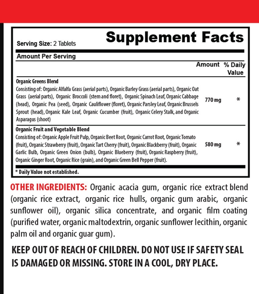OTHER INGREDIENTS: Oragnic acacia gum, oragnic rice extract blend(organic rice extract, organic rice hulls, organic gum arabic, organic sunflower oil), oragnic silica concentrate, oragnic film coating(purified water, organic maltodextrin, organic sunflower lecithin, organic palm oil, and organic guar gum).