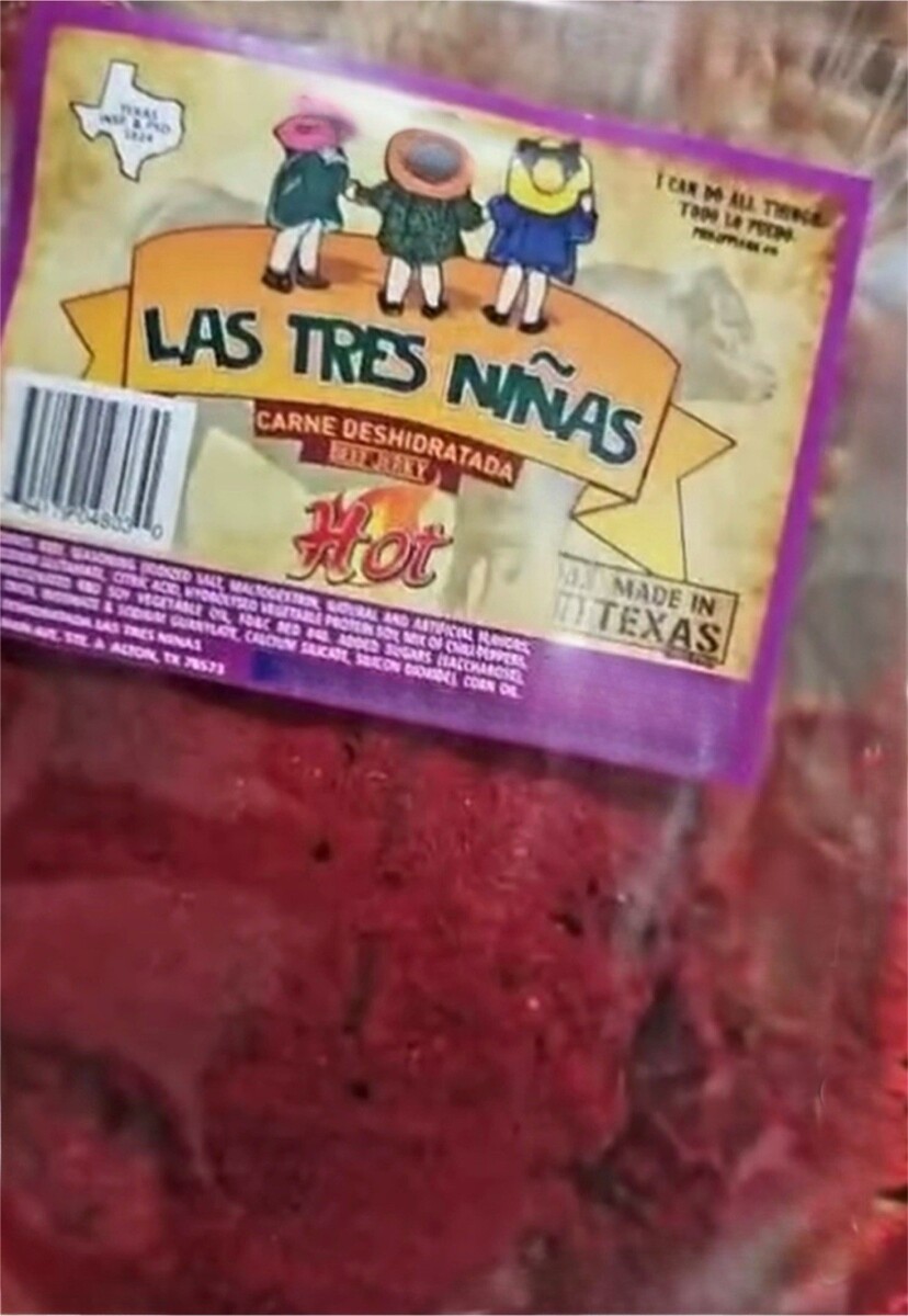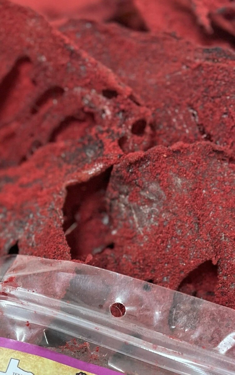 carne seca crunchy 100% premium beef jerky red powder fuego hot mexican snack Texas made 2.6 oz
