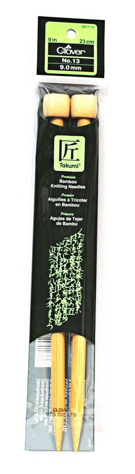 Clover Takumi Bamboo 9 Inch Single Point Knitting Needle Size 13.