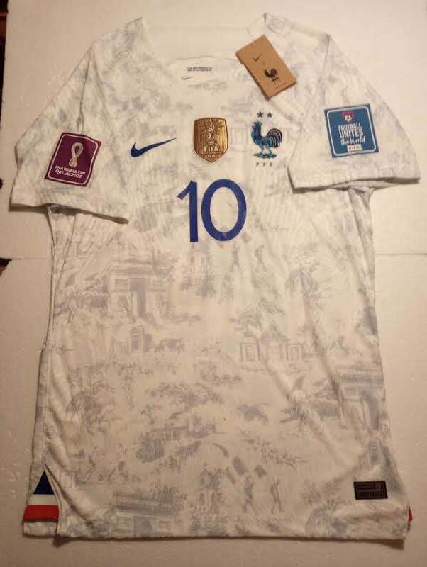 Kylian Mbappe France 2022 World Cup Qatar Match Slim White Away Soccer Jersey