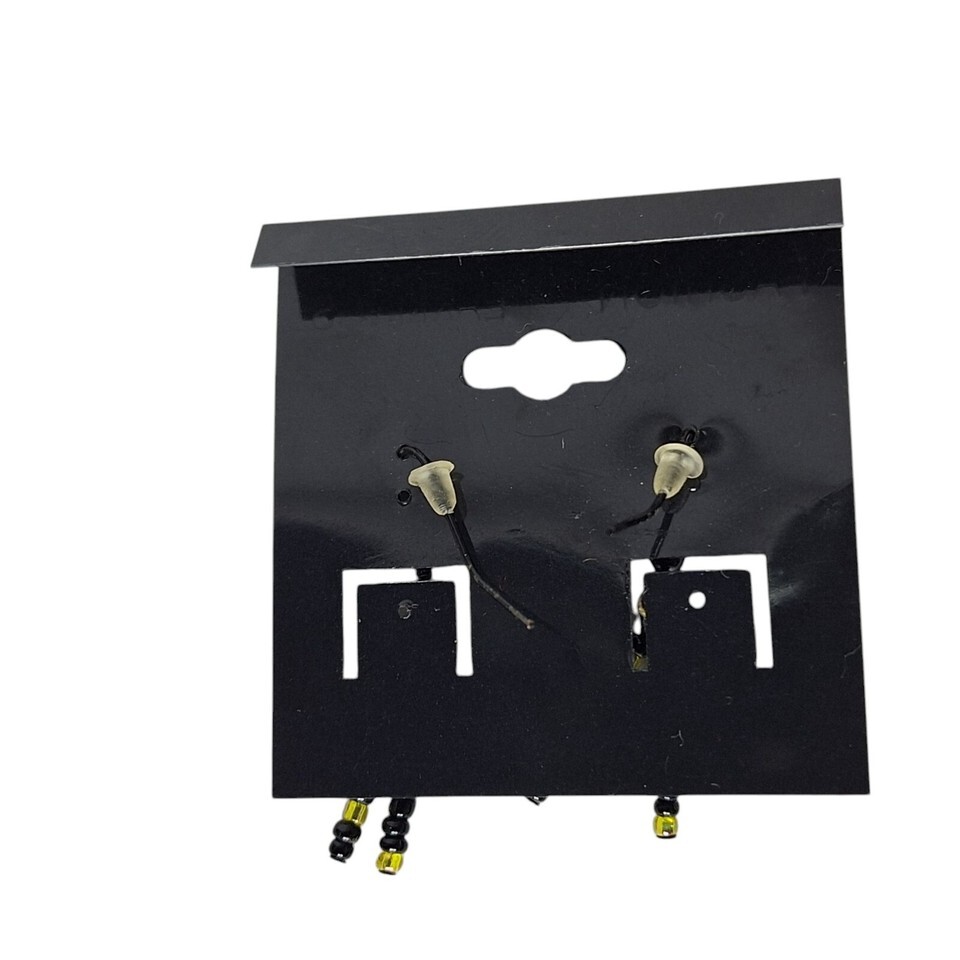 Black Yellow Seed Bead Dangle Drop Tassel Earrings Womens Costume Jewelry