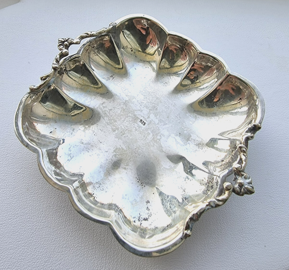 ANTIQUES 925 STERLING SILVER NUT CANDY TRAY DISH 57.9g 4.25 '' x 3.75''
