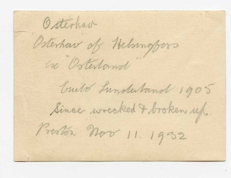 3 original vintage black and white photographs. Each measures about 3 1/2" x 2 1/2" and has information on the ship on the back. Includes the Garryvake, Kathinka and the Osterhau