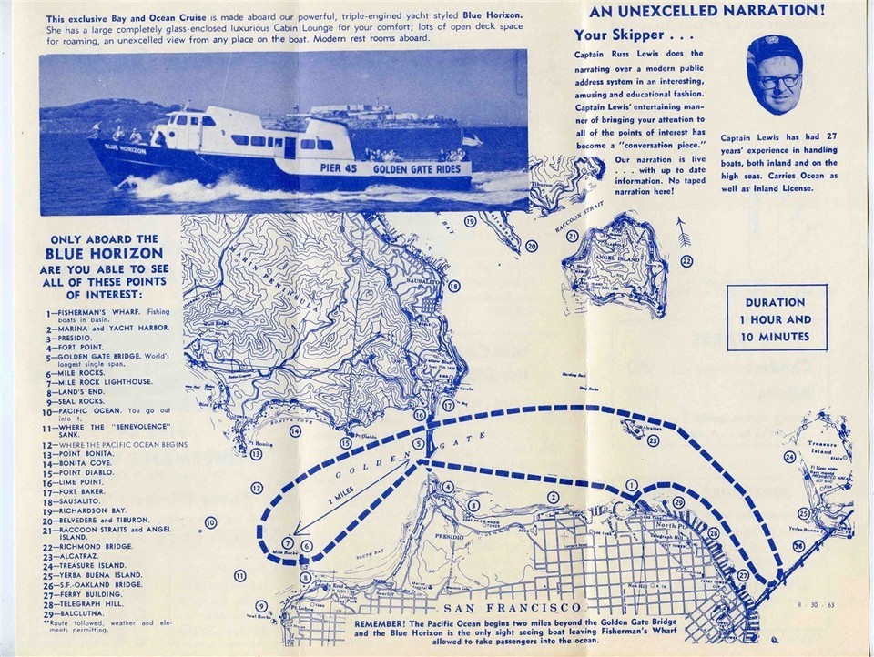 San Francisco Bay Cruise Brochures Red White Fleet Blue Horizon 1950's