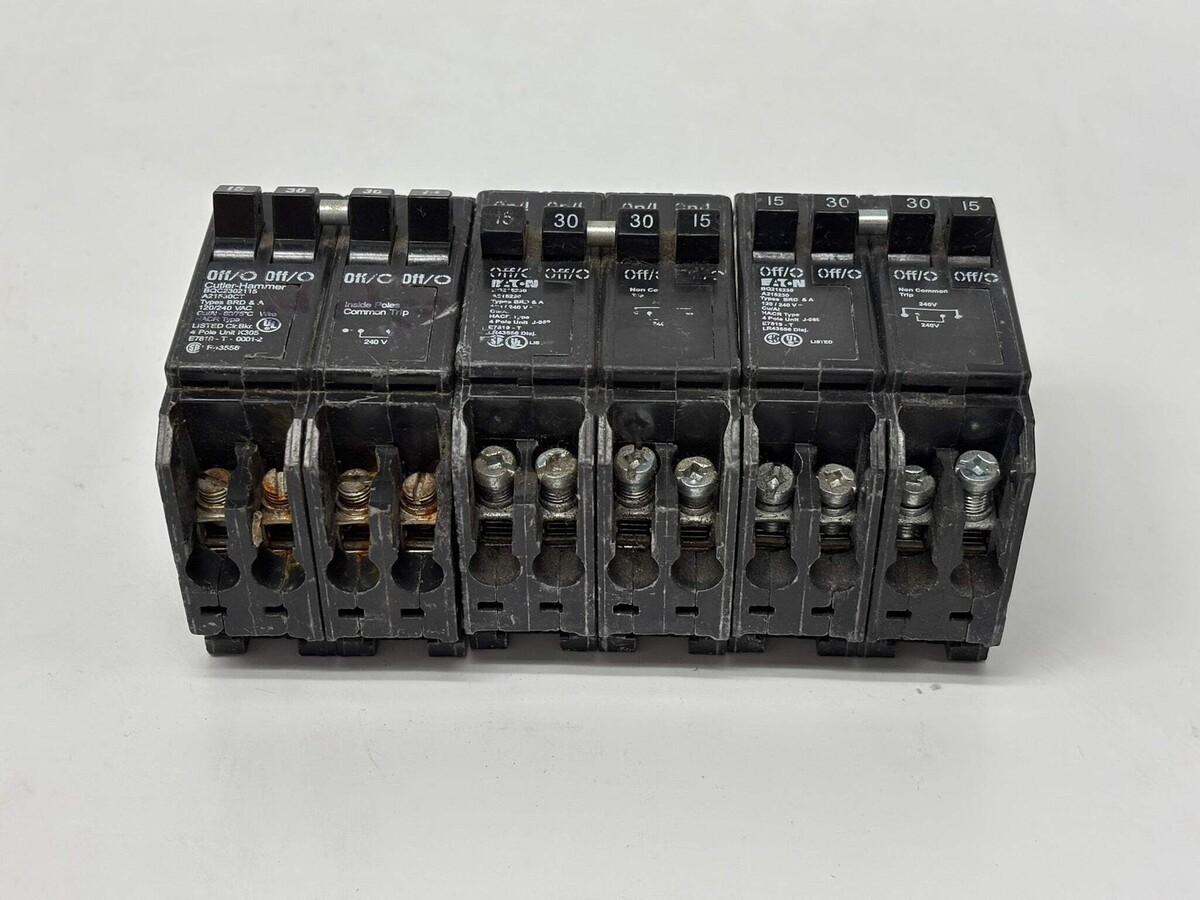 3 Pk Eaton BQ215230 Quad BR Thermal Magnetic Circuit Breaker for 120/240 V Use Used (No Box) ***Please See Reference Photos*** The Eaton BQ215230 is a quadplex thermal magnetic circuit breaker designed for use in Eaton BR series load centers to protect residential and light commercial electrical circuits. It combines two independent 15 amp and two independent 30 amp breakers in a single unit with plug-on mounting for easy panel installation. The breaker operates at 120/240 VAC with a 10 kA interrupting capacity, and features a rejection tab to ensure correct placement in the panel. Listed by: Richard (Sales Team) ?The road to success has many potholes... knowing how to dodge them ahead of the collision will pave our way in reaching our journey.? R. Weckworth (A positive moment brought to you by Help Resale) About Us Welcome to Help Resale, your go-to consignment shop where value meets quality. At Help Resale, we're dedicated to providing you with an exceptional shopping experience, whether you're looking to find the best deals or consign your items. Need to buy a product, but don't see it in our store? Please feel free to reach out to us and we will help you find it! Help Resale 7200 Fair Oaks Blvd Suite 120 Carmichael CA 95608 Business Hours: Monday-Friday: 9:00 am to 5:00 pm (PST) All product and company names are trademarks TM or registered trademarks of their respective holders. Use of them does not imply any affiliation with or endorsement by them.