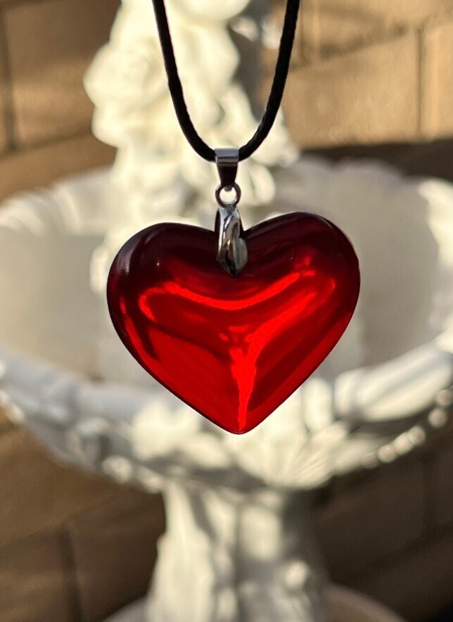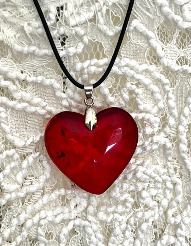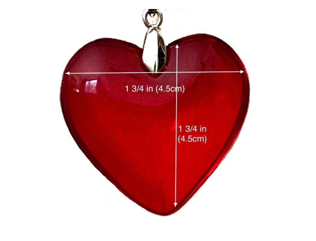 Red Glass Heart Necklace Large Puffy Heart Pendant Deep Red Heart Choker