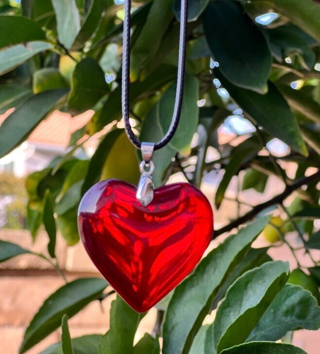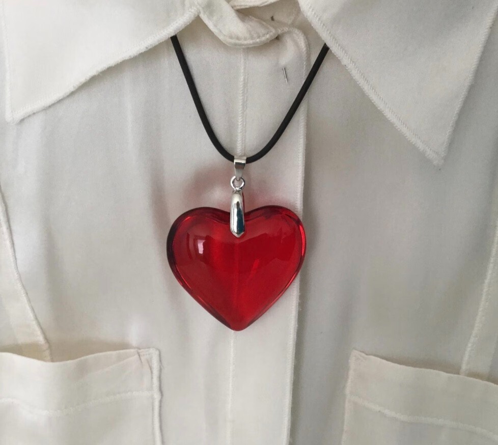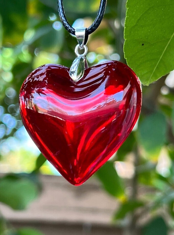 Red Glass Heart Necklace Large Puffy Heart and similar items
