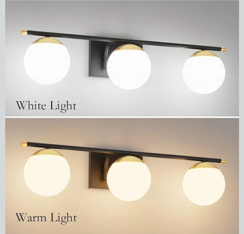 Ralbay Black and Gold Bathroom Lights 3-Light Modern Milky Glass Vanity Lights