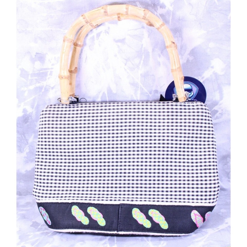 CROFT BARROWS Checkered Bamboo Handle Statement Purse W Embroidered Flipflops