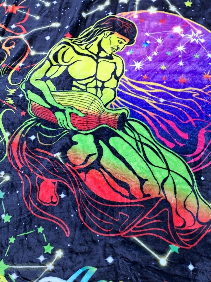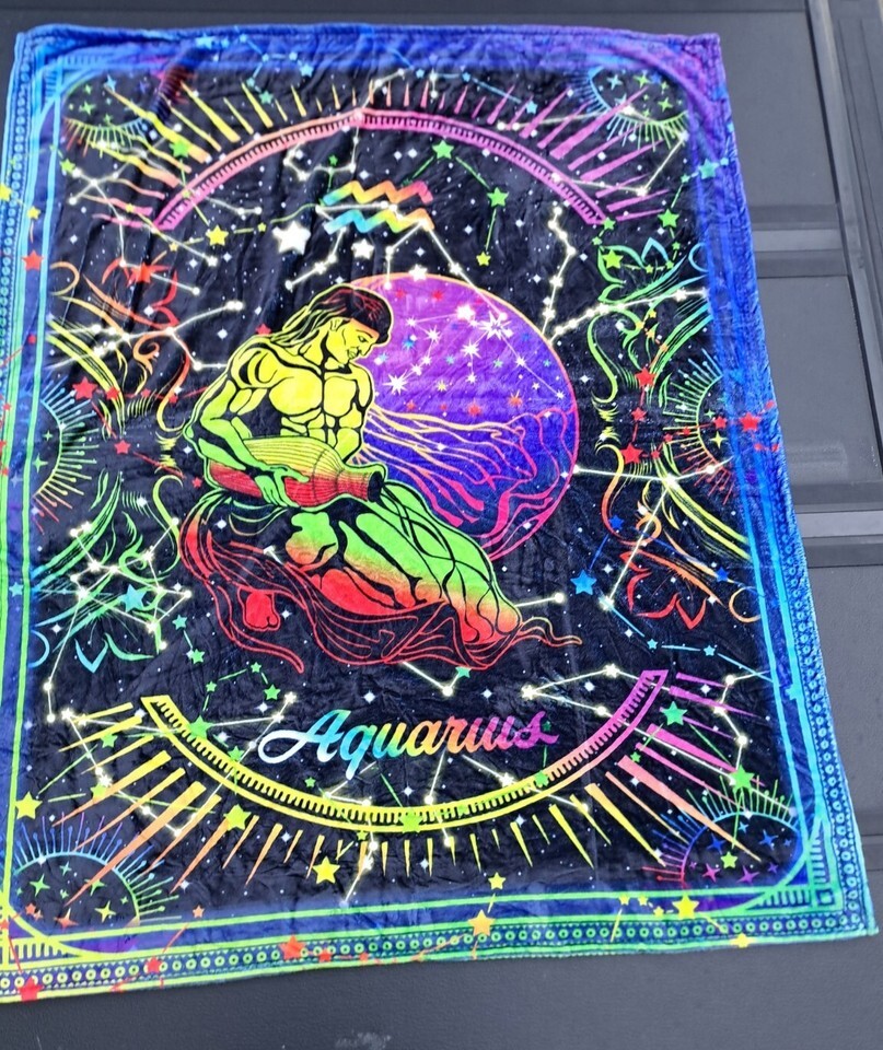 Huge Zodiac Aquarius Blacklight Tapestry Wall Hanging Throw Blanket 4'x5'