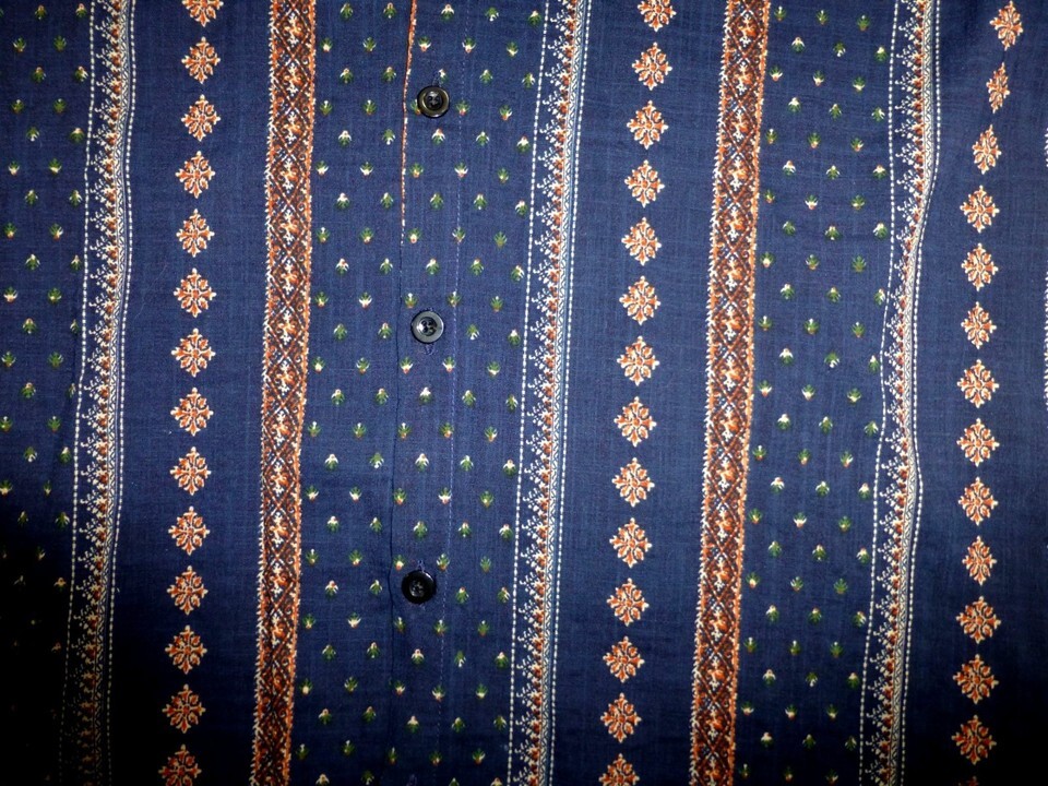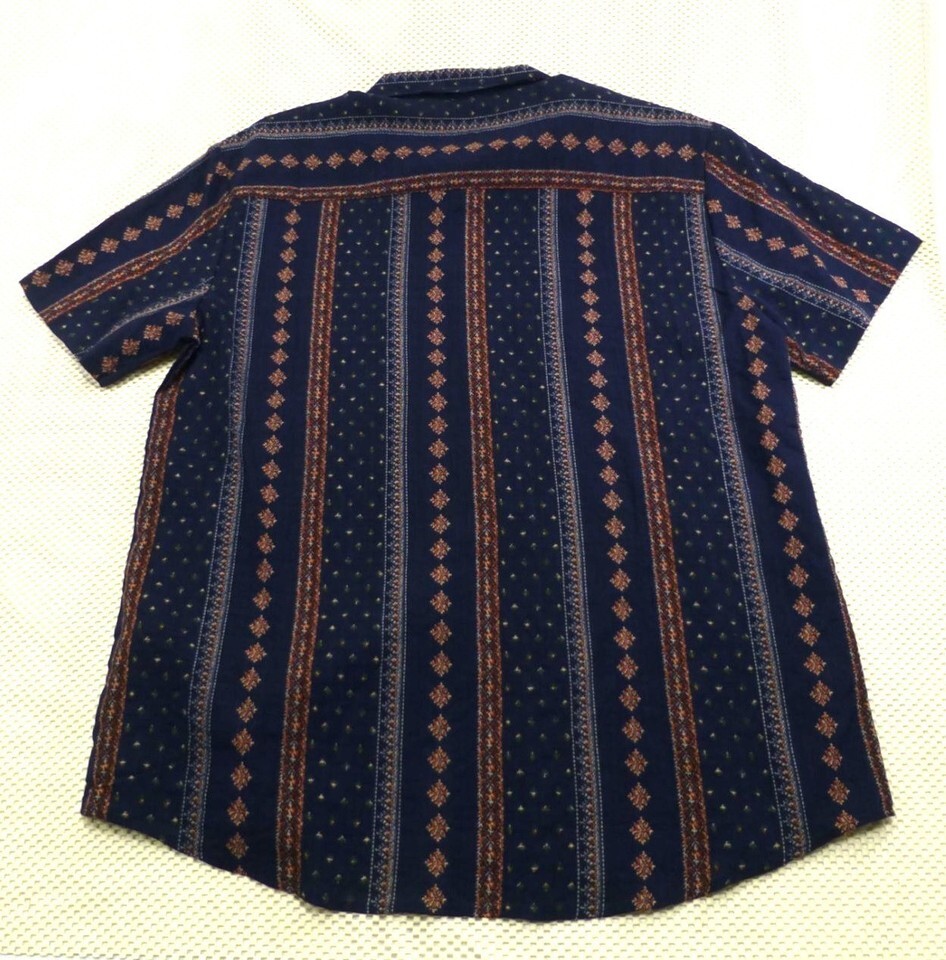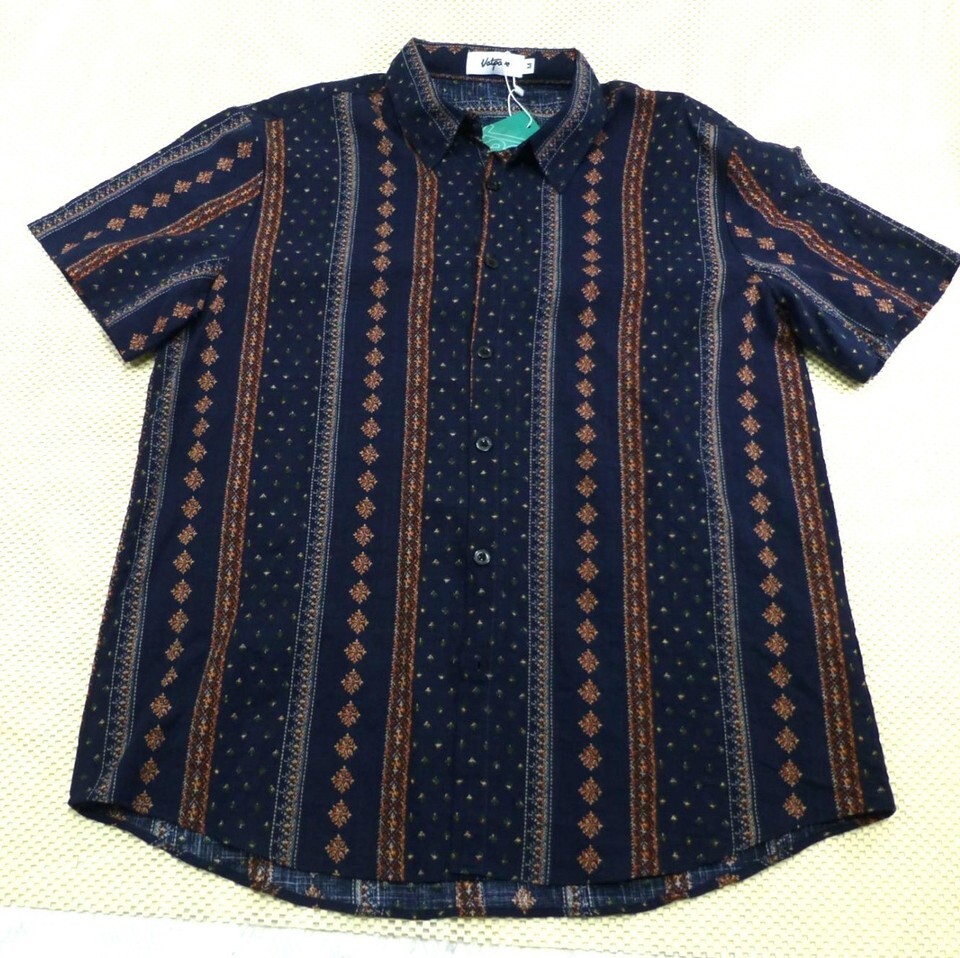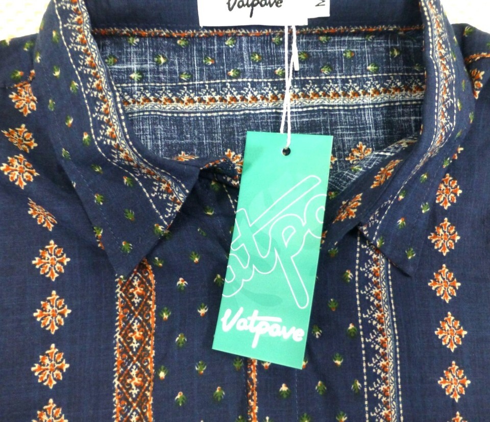 Vatpave Mens Short-Sleeve Button-Up Shirt With Geometric Pattern In Navy & Orang