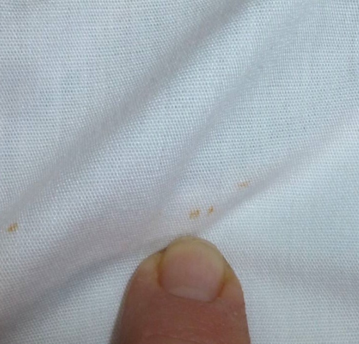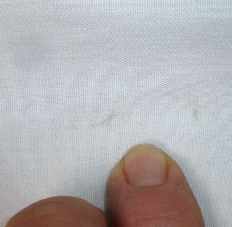 โSlight discoloration on fabric.โ |