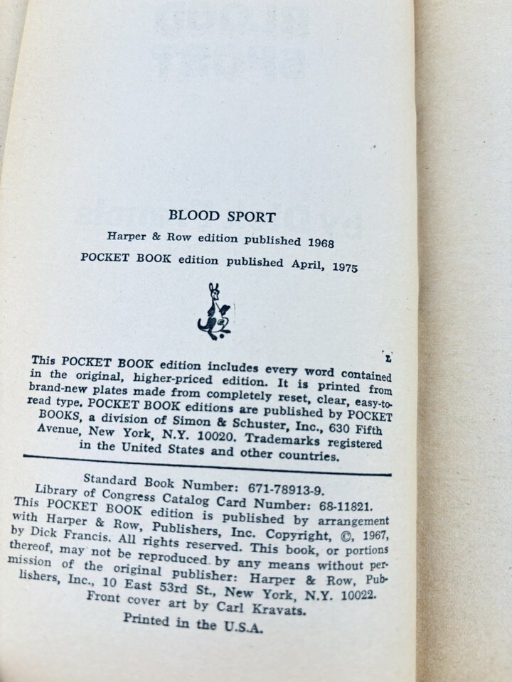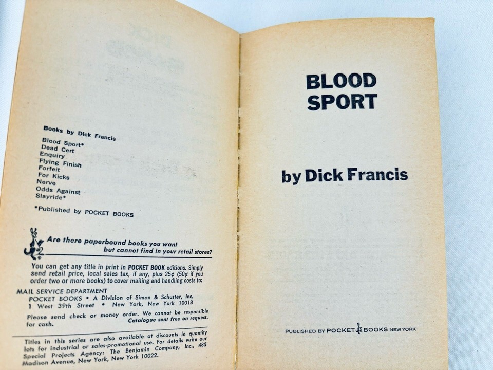 Vintage 1967 Pocket Book- Blood Sport by Dick Francis Paperback Book