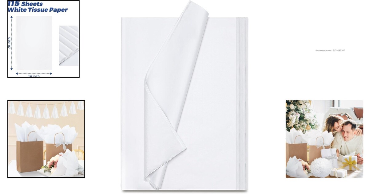Value Pack of 115 White Tissue Paper Sheets, Ideal for Gifts DIY Projects