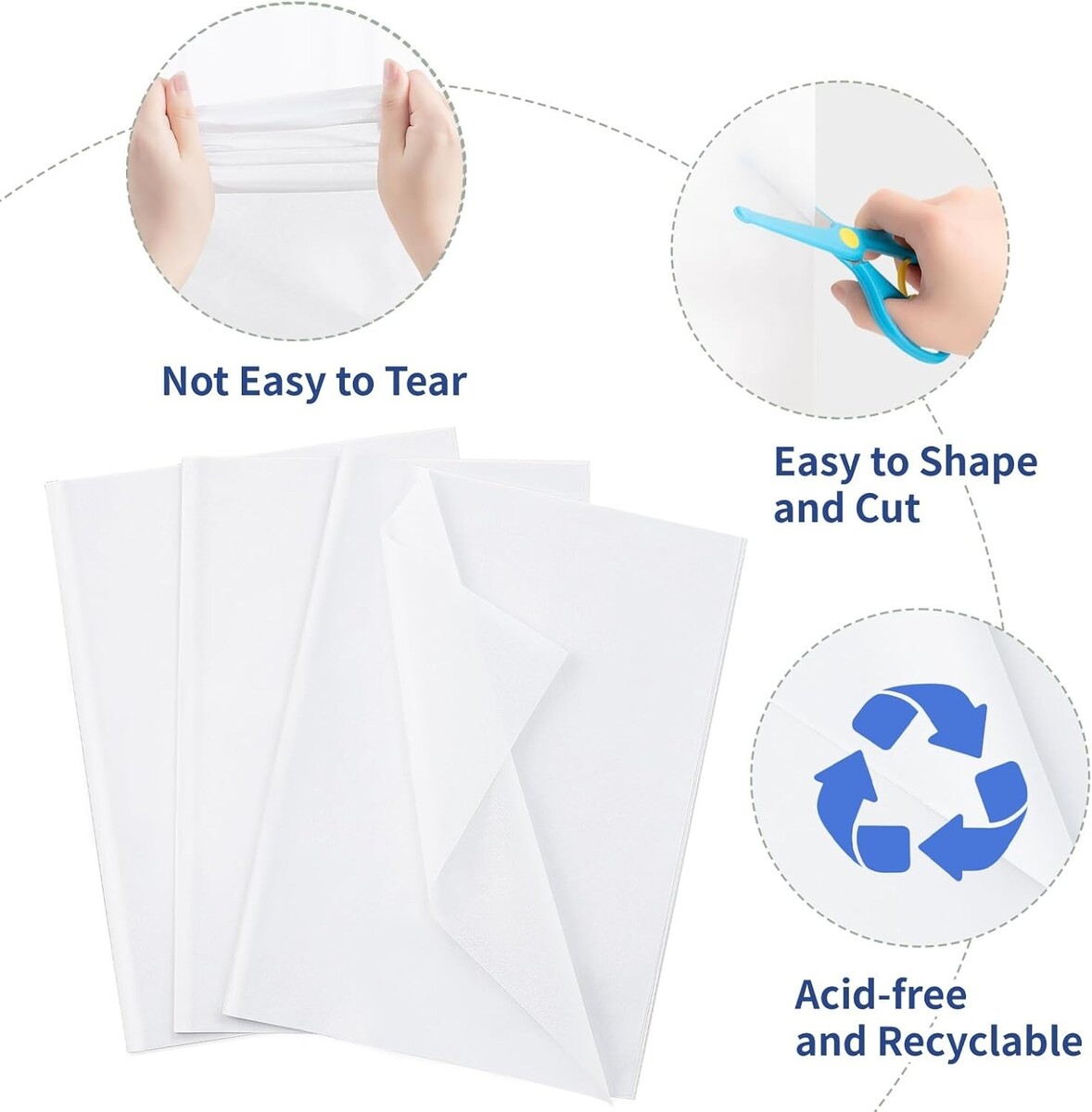 Quality: Crafted from high-grade paper, our tissue is soft and acid-free, ensuring durability while remaining recyclable and eco-friendly.