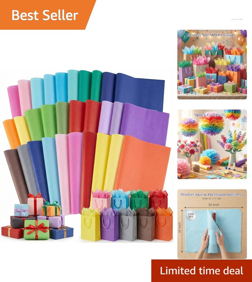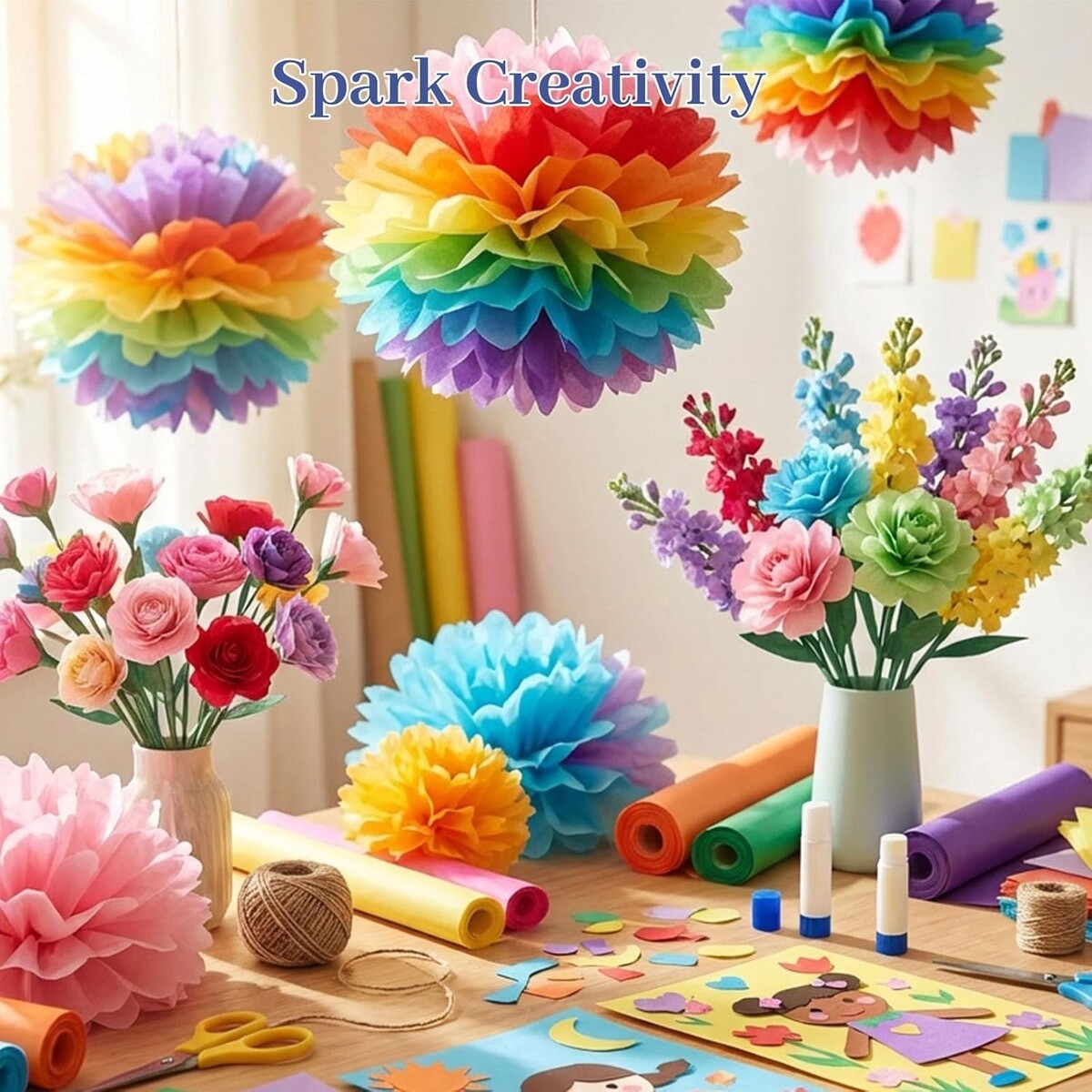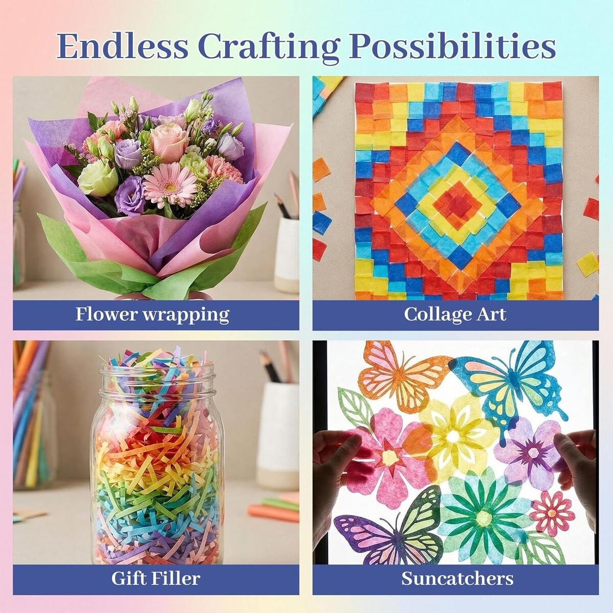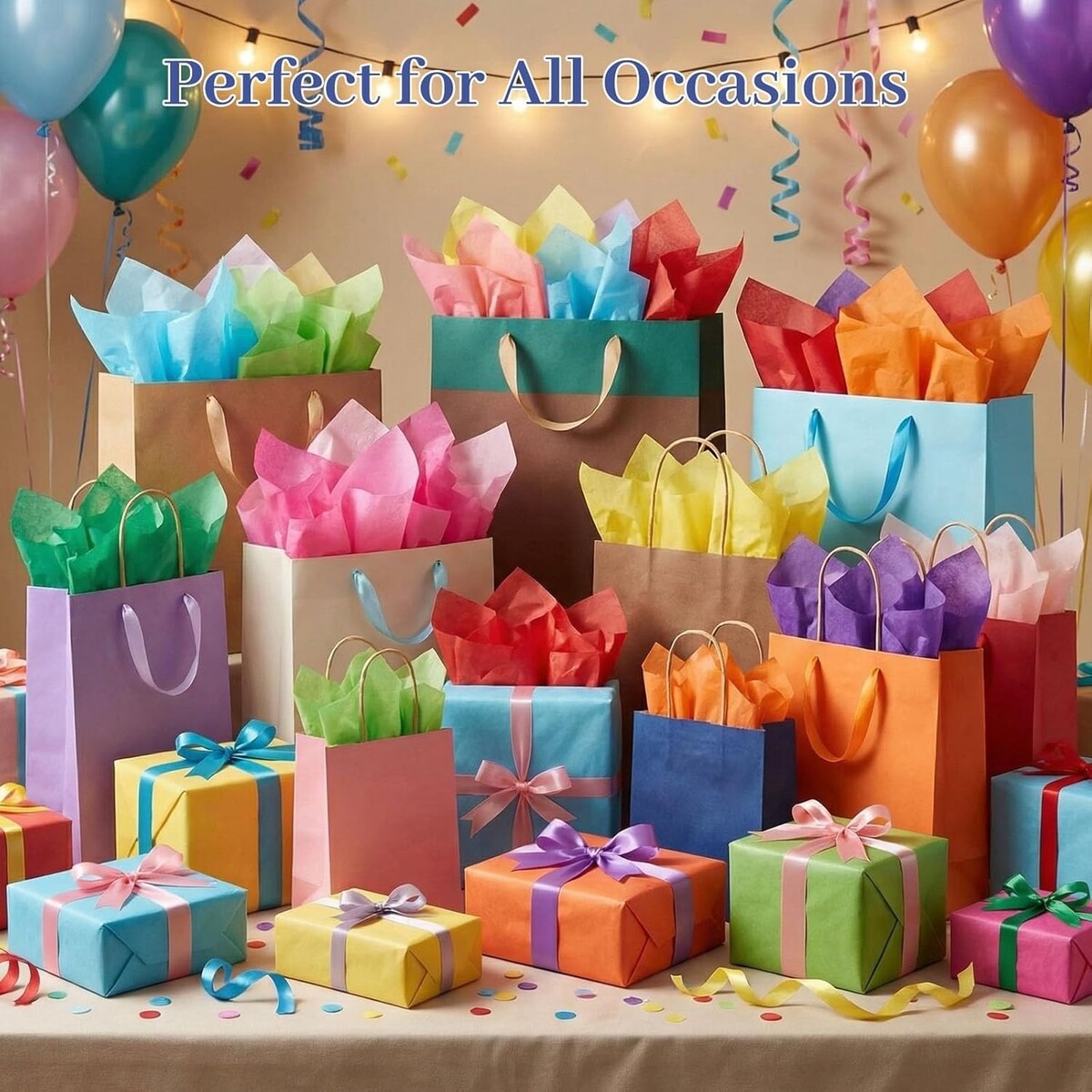 Say goodbye to faded colors and flimsy sheets! Our tissue paper is designed to maintain its richness and form. Whether you're wrapping last-minute gifts, creating decorative items for a party, or encouraging children's craft concepts, imagine the joy and pride in using this versatile tissue paper. Don?t miss out on enhancing your personal touch in every gift! Order your assorted tissue paper pack today and express your creativity effortlessly.