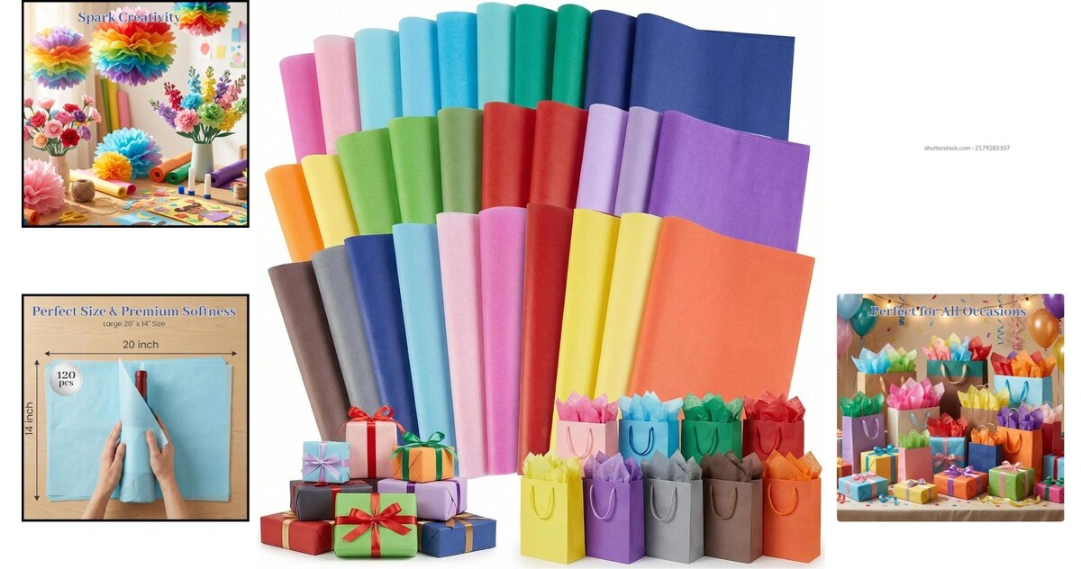 Assorted 120 Sheets Tissue Paper - 20 Colors, 20x14 Inch for DIY Crafts & Gifts