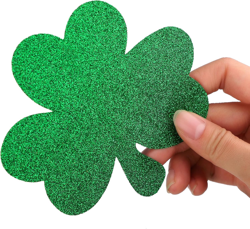 Material Design: Crafted with sparkling glitter shamrocks sewn together with green thread, ensuring a cohesive and festive look.