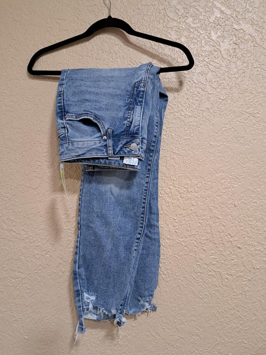 Time and Tru Women’s High Rise Straight Leg Distressed Hem Jeans – Size 8 Regul