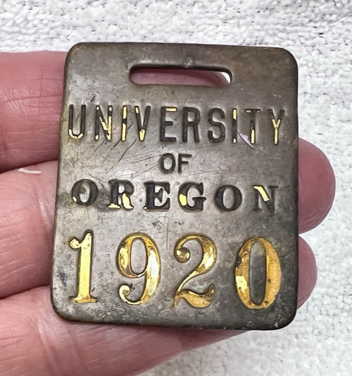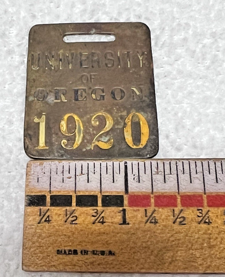 1920 University of Oregon Brass Metal Locker Tag 1 5/8 x 1 3/8 inch