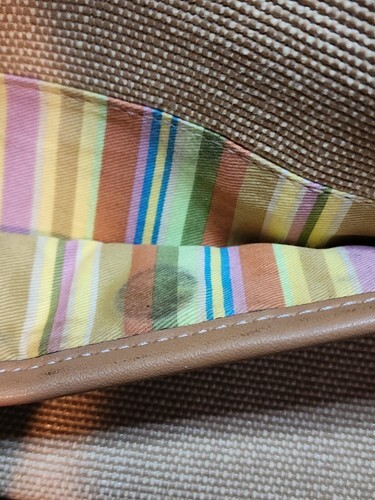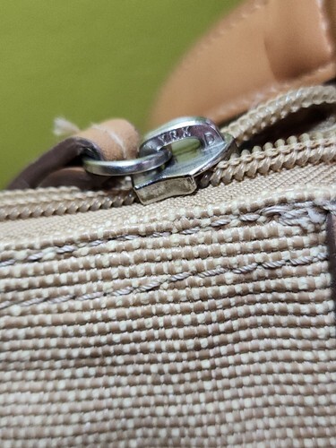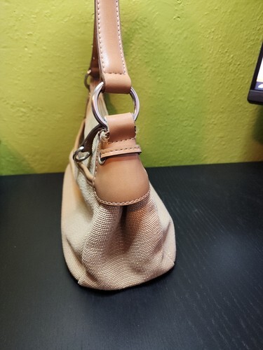 Fossil Canvas Purse Womens Tote Bag Shopper Leather Tan Brown Handbag Cloth Line