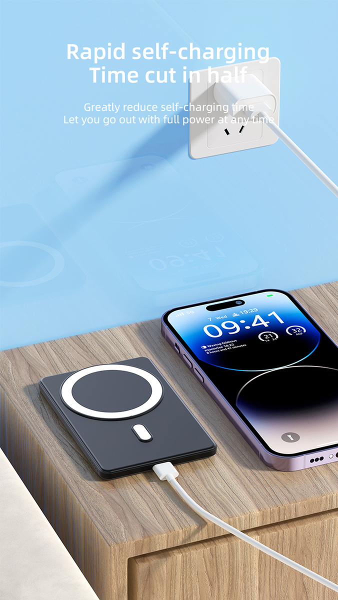 The slim, lightweight design makes it easy to carry in your pocket or bag, while the strong magnetic alignment keeps the charger properly positioned during use. Perfect for travel, commuting, and daily backup power.